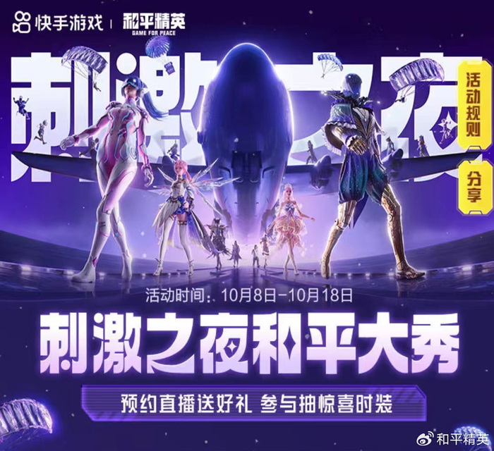 和平精英刺激之夜即将降临 ,刺激之夜快来围观和平大秀直播!上快手预时装10月8日-10月18日 ,约和英直和平精英官方携手快手平台,平精影视vip批发平台发卡网送上“刺激之夜,播领和平大秀” 。重好预约直播即可领取三重好礼
